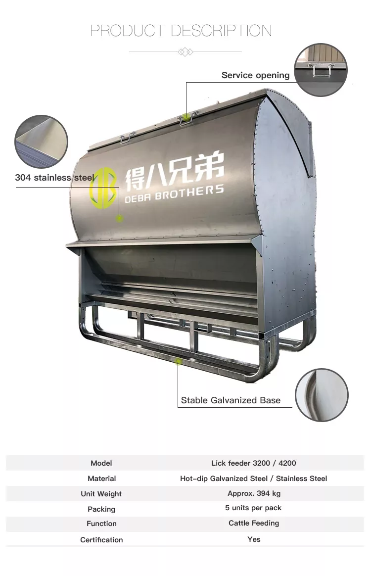 แผงลอยแบบเข้าได้ฟรีและเครื่องให้อาหารเลียโคเคลือบสังกะสีสำหรับงานหนักของเรามีการออกแบบที่ใช้งานง่าย เหมาะสำหรับฟาร์มปศุสัตว์ทุกขนาด และให้ความทนทานเป็นพิเศษด้วยวัสดุระดับพรีเมียมและฝีมือการผลิตที่ประณีต ได้รับการตอบรับอย่างดีจากเกษตรกรผู้เลี้ยงปศุสัตว์ทั่วโลก ผลิตภัณฑ์เหล่านี้ได้รับการตรวจสอบอย่างเต็มที่ถึงประสิทธิภาพที่มั่นคงและความคุ้มค่าสูง