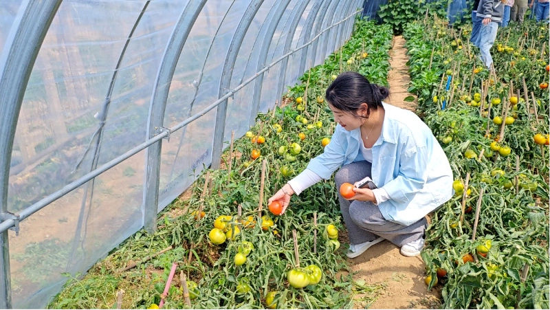 หลังจากความหลงใหลก็เป็นเวลาที่สะดวกสบาย เวลา 10.30 น. เราไปสวนเก็บมะเขือเทศเซียจวงร่วมกันเพื่อสัมผัสธรรมชาติอย่างใกล้ชิด วันนั้นเป็นวันอากาศแจ่มใสและมีแสงแดดส่องลงมาที่ทุ่งนา กิ่งก้านและใบไม้สีเขียวปกคลุมไปด้วยมะเขือเทศสีแดงสด 69 ผล ซึ่งมีลักษณะกลมและอวบ สีสดใส ทำให้ผู้คนน้ำลายไหลจากระยะไกล