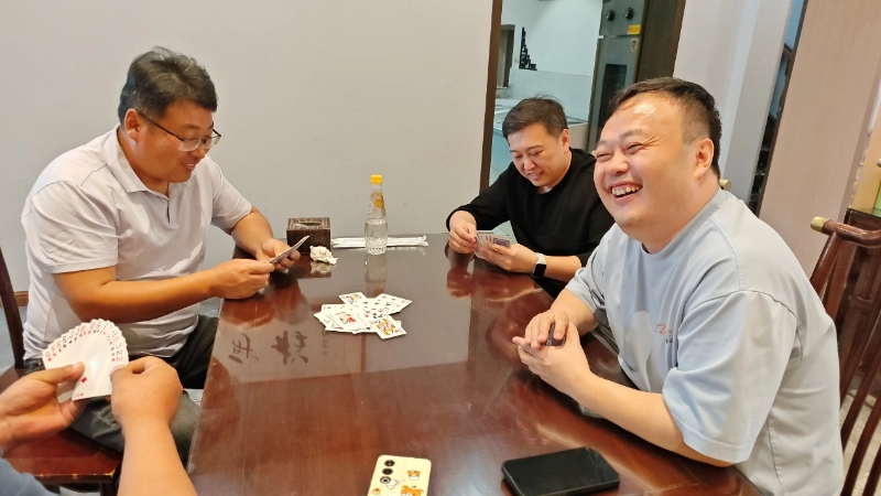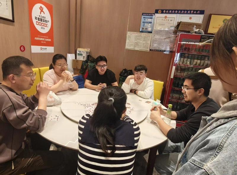ที่สถานที่จัดการแข่งขัน ทุกคนตั้งทีมได้อย่างอิสระ จับคู่กัน นั่งรอบโต๊ะ สับไพ่ เล่นไพ่ ให้ความร่วมมือและแข่งขันกัน ทุกขั้นตอนได้รับการคิดมาอย่างดี และไพ่ทุกใบที่เล่นมีกลยุทธ์ที่ซ่อนอยู่ บางครั้งพวกเขาก็เชียร์การ์ดดีๆ บางครั้งก็สนับสนุนซึ่งกันและกันสำหรับความผิดพลาด และบางครั้งก็พูดคุยกันอย่างจริงจังถึงกลยุทธ์ที่จะชนะ บรรยากาศในที่เกิดเหตุดูผ่อนคลายและอบอุ่น โดยไม่ต้องยุ่งกับงานและควบคุมแรงกดดัน ทุกคนก็เพิ่มความเข้าใจและมิตรภาพในเกมที่น่าสนใจ ปลดปล่อยความกดดันด้วยเสียงหัวเราะ และยังตระหนักถึงความหมายที่แท้จริงของทีม "ความสามัคคีและความร่วมมือ win-win และการอยู่ร่วมกันอย่างลึกซึ้ง